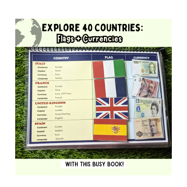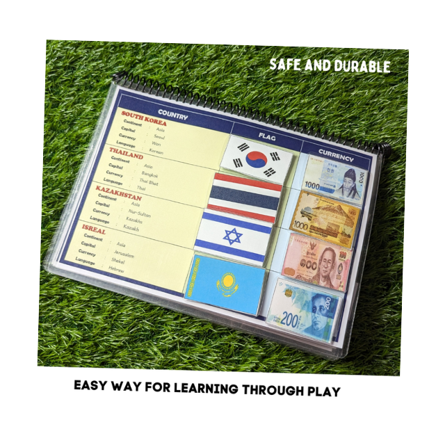 - Engaging Design: Colorful flags and currencies capture kids’ attention and make learning enjoyable.
