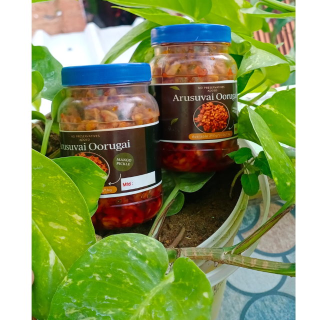 Arusuvai Oorugai is an authentic South Indian pickles (oorugai/achar) made with traditional recipes, natural ingredients, and bold flavors. We offer a wide range of homemade, spicy, tangy, and aromatic pickles—from classic mango, lemon, and garlic to regional specialties like narthangai (citron) and nellikai (gooseberry).